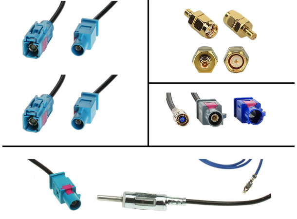 • Kabel for DAB+: Fakra(m) til Fakra(f) 500cm sammen med antenneadaptere SMB(m) og SMA(m)