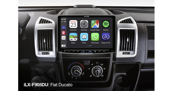 Oppgrader din Fiat Ducato III med en stor flott Alpine HALO 9 hovedenhet. Med iLX-F905DU leveres med alle nødvendige installasjonsdeler for en perfekt montering av den store flotte 9-tommer høyoppløste WXGA-berøringsskjermen i bilens dashbord. Den superslanke skjermen vil se ut som om den svever over dashbordet og kan pent justeres på forskjellige måter for den beste posisjonen. Den superslanke skjermen ser ut til å bare sveve over dashbordet og kan justeres på forskjellige måter for den beste posisjonen.